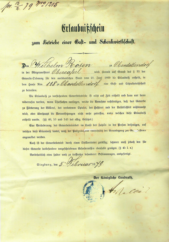 So finden Sie gleich hier auf der Startseite jene Urkunde, mit der im Jahre 1879 die Tradition unseres Weinhauses begründet wurde: